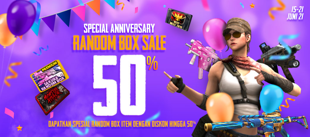Beberapa Random Box yang bisa kalian dapatkan dengan harga spesial adalah sebagai berikut: ![]() ![]() ![]() *Item, Ketentuan & Waktu dapat berubah sewaktu - waktu tanpa pemberitahuan terlebih dahulu Ayo Jangan sampai terlewatkan yah!!