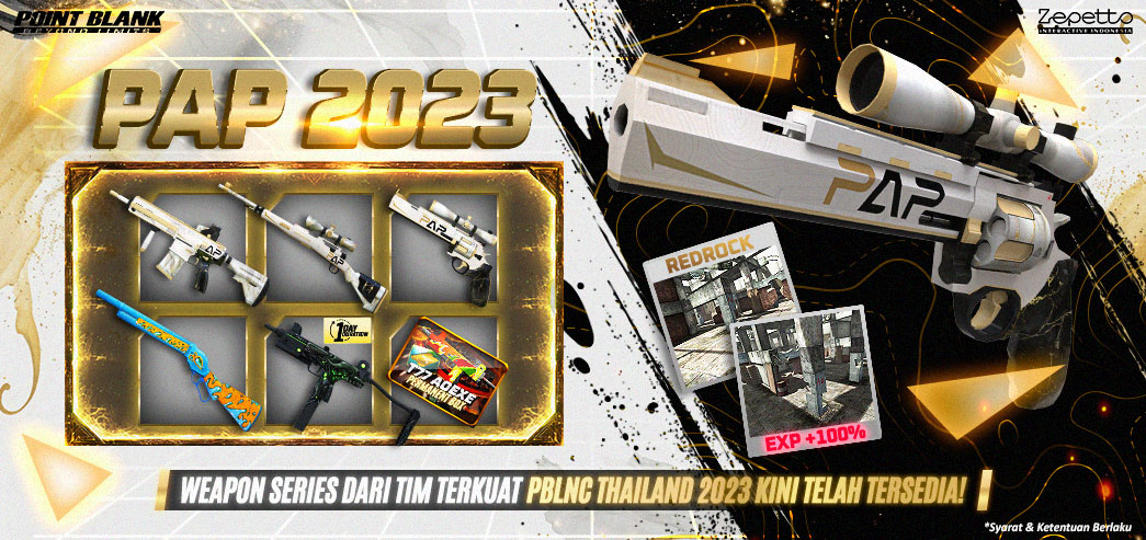 Hi Troopers !! Pada Update 13 Mei 2025 kali ini, Weapon Series dari Tim Terkuat PBLNC Thailand 2023 Kini Telah Tersedia! Segera cek update terbaru kali ini yah. ![]() Tersedia Di Shop : 13 - 26 Mei 2025 PAP 2023 2 Main Weapon dan 1 Secondary Weapon ![]() ============================================================== ![]() Setelah Maintenance 13 Mei 2025 ada Update Improvement pada karakter Tarantula (Free Rebels), Viper Red(Free Rebels) dan Hide (CT-FORCE) lho. Berikut Tampilannya : Sebelum Improvement : Setelah Improvement :