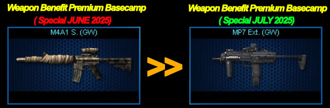 Hi, Troopers! Berikut adalah Perubahan Benefit Weapon Premium Basecamp pada Juli 2025 Periode Benefit : 1 Juli 2025 (Setelah Maintenance) - 4 Agustus 2025 ![]() Perubahan Premium Basecamp Benefit ini hanya pada Special Weapon Bulanan saja