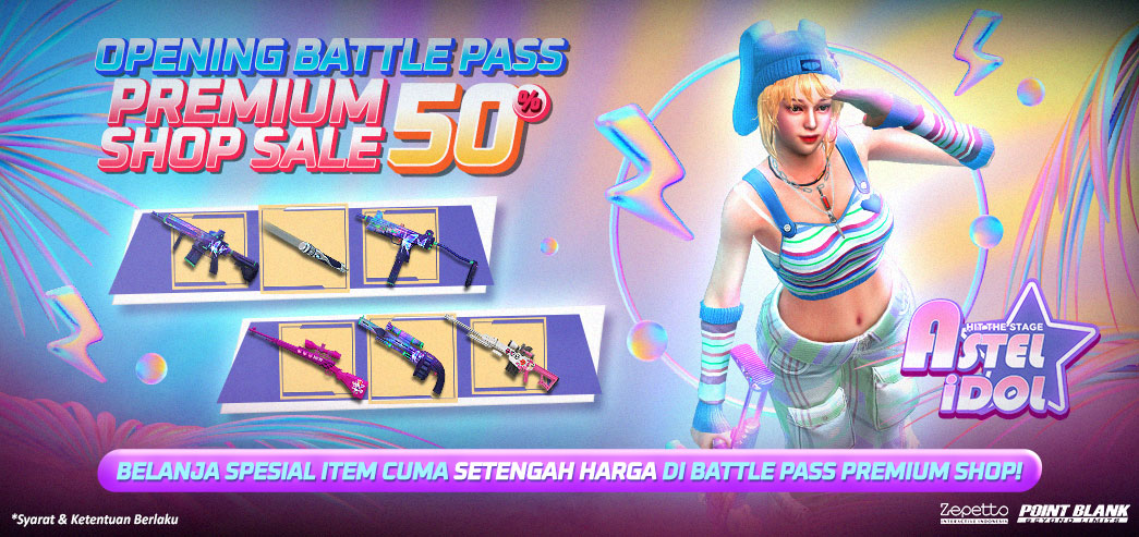 Hai Troopers Sudah Punya Premium Battle Pass Belum nih?? Karena Kami telah mempersiapkan Berbagai Item Spesial dengan Harga diskon 50% lho..!! Diskon Ini Hanya Tersedia di PREMIUM SHOP BATTLE PASS!! Periode Event berlaku 19 Agustus 2025 (Setelah Maintenance) - 25 Agustus 2025 (Hingga 23.59 WIB) Berikut adalah Item Spesial dengan Diskon 50% di Premium Shop Battle Pass: ![]() ![]() ![]() ![]() * 1 ID hanya bisa membeli 1 kali per 1 Jenis Item ** Item tersedia hanya dengan Durasi 30 Hari ***Item, Ketentuan & Waktu dapat berubah sewaktu - waktu tanpa pemberitahuan terlebih dahulu