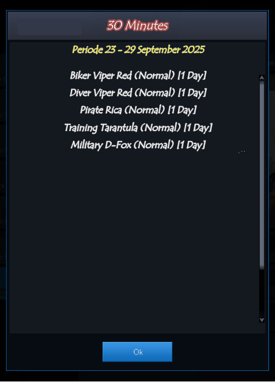 Ayo Bermain dan dapatkan berbagai Karakter Gratis Periode Event : 23 September (Setelah Maintenance) - 29 September 2025 Bermain tanpa putus selama 30 , 60 dan 100 menit kalian bisa mendapatkan salah satu item - item dibawah ini ![]() ![]()