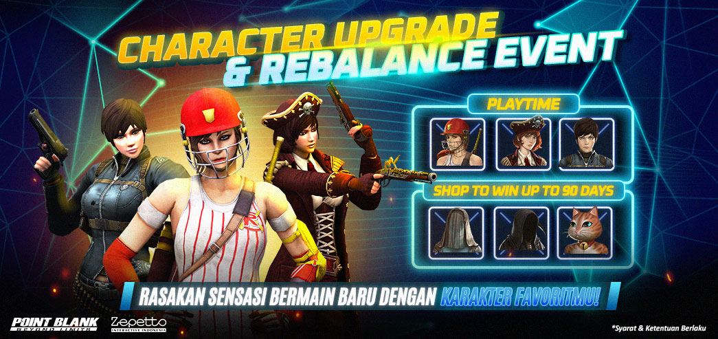 7. Pemenang akan di umumkan maksimal 14 Hari Kerja Setelah Event Berakhir. 8. Ketentuan, Waktu & Item Reward dapat berubah sewaktu - waktu tanpa pemberitahuan terlebih dahulu ![]() Dalam Memeriahkan Character Update dan Rebalance kali ini