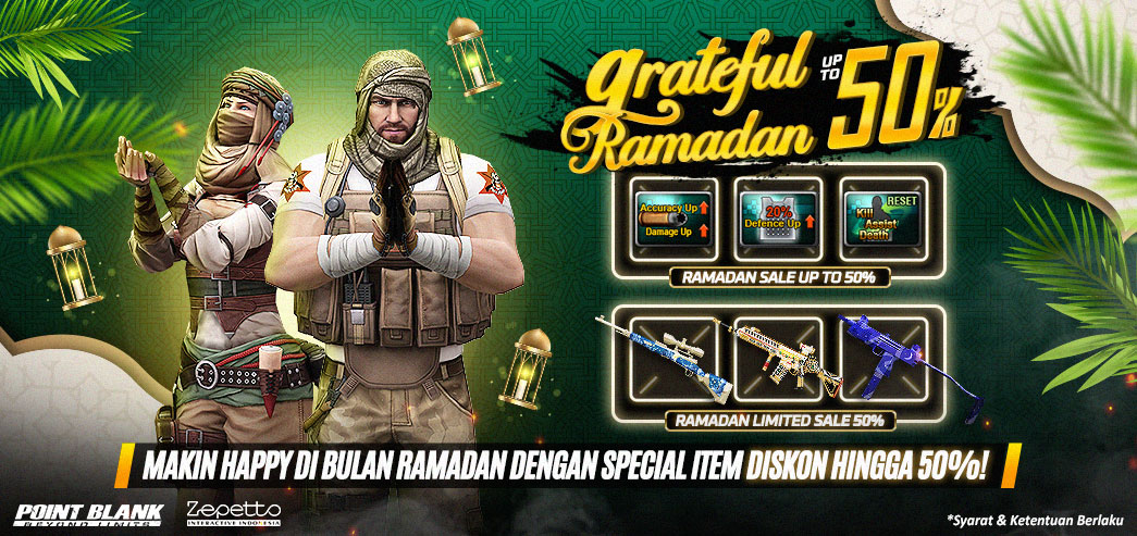 ![]() Hi Troopers, Ada Promo menarik untuk kalian lho...! Karena kami telah mempersiapkan GRATEFUL RAMADAN SALE UP TO 50% di Ingame Shop lho..!! Periode Event berlaku 17 Februari (Setelah Maintenance) - 23 Februari 2026 ( 23.55 WIB ) Berikut adalah Item Spesial dengan Durasi Tertentu dengan Diskon Up To 50% : ![]() ![]() ![]() ![]() ![]() ![]() *Item, Ketentuan & Waktu dapat berubah sewaktu - waktu tanpa pemberitahuan terlebih dahulu Besaran Diskon Berbeda-beda Bergantung pada Durasi Item yang ingin kamu beli