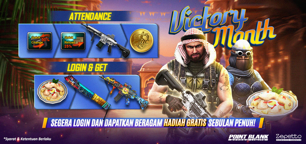 ![]() Periode Event : 17 Maret - 13 April 2026 Dapatkan item - item menarik dari event attendance, jangan sampai terlewatkan yah..!!! ![]() * Seluruh Item TIDAK AKAN langsung terpakai / use sehingga masih bisa kalian simpan di Inventory. ** Waktu & Item Reward dapat berubah sewaktu - waktu tanpa pemberitahuan terlebih dahulu Kalian juga bisa mendapatkan TAMBAHAN Quick Change, Quick Reload, dan Golden Ticket dengan Menyelesaikan Daily Quest dengan Mudah Info Daily Quest KLIK IMAGE Berikut ![]() Jangan Lupa Untuk Login ke dalam game yah!! dan Klaim Item Berikut :