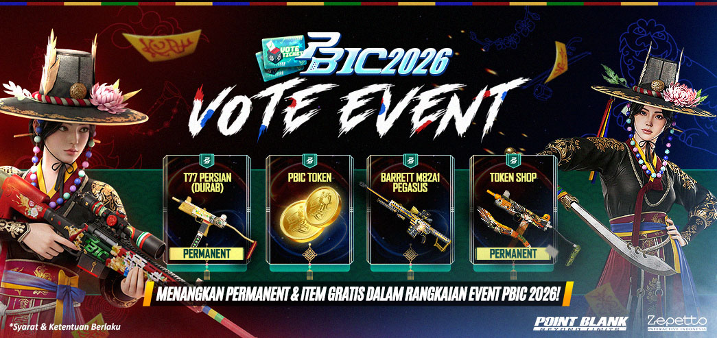 Beragam Spesial Item atau Permanent Item di Token Shop Item PBIC Token ini akan di HAPUS pada 27 April 2026 dari inventory kalian pastikan gunakan PBIC Token sebelum tanggal tersebut ya.. ![]() ![]() Jangan Lupa Untuk Login ke dalam game yah!! dan Klaim Item Berikut : Periode Event : 24 Februari - 23 Maret 2026 PBIC Vote TIcket (1 Unit) dan Periode Event Week 1 : 27 Februari - 1 Maret 2026 PBIC Token (5 Unit) Periode Event Week 2 : 6 - 8 Maret 2026 PBIC Token (5 Unit) Periode Event Week 3 : 13 - 15 Maret 2026 PBIC Token (5 Unit) Periode Event Week 4 : 20 - 22 Maret 2026 PBIC Token (5 Unit) Periode Event Week 5 : 27 - 29 Maret 2026 PBIC Token (5 Unit) Periode Event Week 6 : 3 - 5 April 2026 PBIC Token (5 Unit) Periode Event Week 7 : 10 - 12 April 2026 PBIC Token (5 Unit) Periode Event Week 8 : 17 - 19 April 2026 PBIC Token (5 Unit) (Pukul 00:01 ~ 23:59 WIB) ![]()