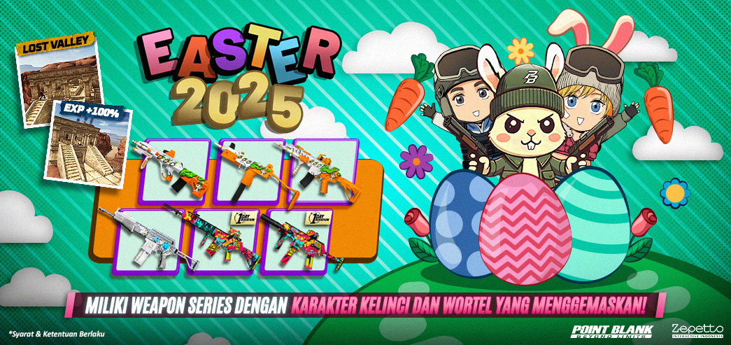 Hi Troopers !! Pada Update 15 April 2025 kali ini, Miliki Weapon Series dengan karakter kelinci dan wortel yang menggemaskan! Segera cek update terbaru kali ini yah. ![]() Tersedia Di Shop : 15 - 28 April 2025 Easter 2025 3 Main Weapon ![]() ============================================================== ![]() Setelah Maintenance 15 April 2025 ada update Rebalancing Sniper Part 2, berikut adalah detailnya. ![]() ============================== ![]() Hi, Troopers! Pada Bulan ini akan ada Event Diskon lho, Namun Diskon Kali ini Khusus untuk kalian yang BELUM PERNAH melakukan Pembelanjaan / Pembelian Item menggunakan PB Cash dan Item Diskon ini akan otomatis ada di shop ya Periode Event : 8 April 2025 (Setelah Maintenance) - 21 April 2025