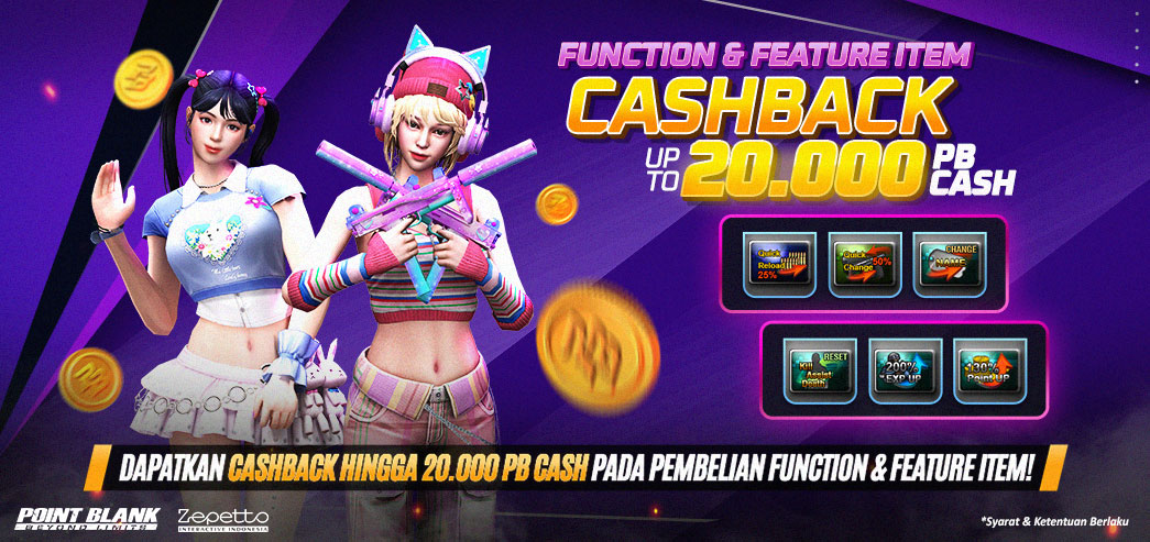 Hi, Troopers! Setelah Maintenance kali ini akan ada Event CASHBACK hingga 20,000 PB CASH lho, Namun CASHBACK Kali ini, bisa kalian peroleh bila TELAH mencapai Total Pembelanjaan / Pembelian menggunakan PB CASH khusus untuk Seluruh Jenis Function & Feature Item di In-game dan Premium shop. Periode Event : 17 Februari (Setelah Maintenance) - 23 Februari 2026 (23.59 WIB) 1. Cara Pembelian Seluruh Jenis Function & Feature Item dengan PB CASH di INGAME SHOP