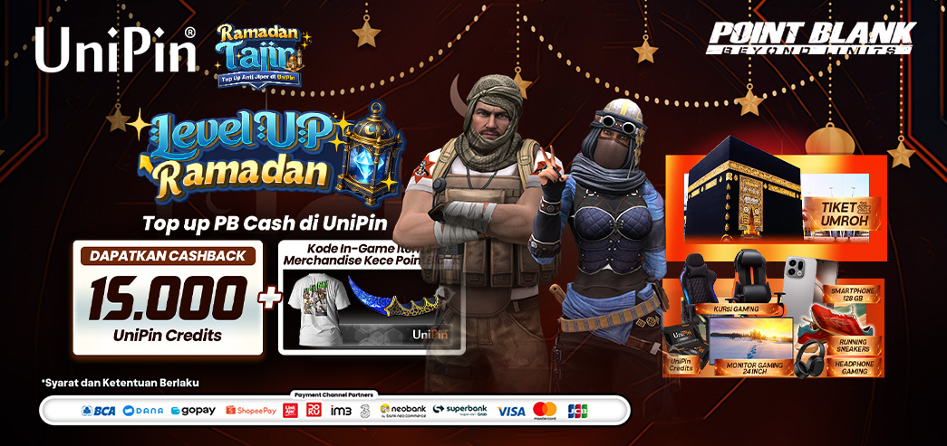 Hai Troopers, Dalam Memeriahkan Bulan Ramadan kali ini, UniPin dan Point Blank Beyond Limits hadir kembali mengadakan Event Top Up lho..!! Troopers bisa mendapatkan Spesial Item Point Blank bila melakukan Top Up dengan Denominasi Tertentu. Selain itu Bila kalian melakukan Top Up minimum Rp 50.000,- melalui Website UniPin maka kalian berkesempatan untuk mendapatkan Bonus Cashback 10% UniPin Credit Maksimum Hingga 15.000 UniPin Credit. Untuk mendapatkan Reward Spesial UniPin x Point Blank Beyond Limits ini kalian harus mengikuti Syarat dan Ketentuannya berikut ini ya.. Syarat dan Ketentuan Event: 1. Periode event adalah 1 Maret (Mulai 00.01 WIB) - 14 Maret 2026 2. Troopers WAJIB Login ke akun UniPin terlebih dahulu sebelum melakukan transaksi. Belum punya akun UniPin? Yuk register di www.unipin.com/register. 3. Top Up Minimal Rp 50.000,- untuk kesempatan mendapatkan Bonus Cashback 10% UniPin Credit dengan Maksimum Hingga 15.000 UniPin Credits. 4. Top Up PB Cash dengan Denominasi yang telah di tentukan melalui Website UniPin, Troopers berkesempatan mendapatkan Spesial In-game Item dan Merchandise Point Blank. SPESIAL IN-GAME ITEM POINT BLANK ![]() SPESIAL MERCHANDISE POINT BLANK ![]()