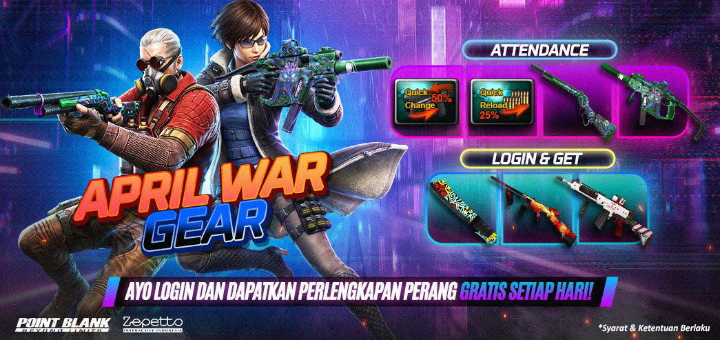 ![]() Periode Event : 14 April - 11 Mei 2026 Dapatkan item - item menarik dari event attendance, jangan sampai terlewatkan yah..!!! ![]() * Seluruh Item TIDAK AKAN langsung terpakai / use sehingga masih bisa kalian simpan di Inventory. ** Waktu & Item Reward dapat berubah sewaktu - waktu tanpa pemberitahuan terlebih dahulu Kalian juga bisa mendapatkan TAMBAHAN Quick Change, Quick Reload, dan Golden Ticket dengan Menyelesaikan Daily Quest dengan Mudah Info Daily Quest KLIK IMAGE Berikut ![]() Jangan Lupa Untuk Login ke dalam game yah!! dan Klaim Item Berikut :