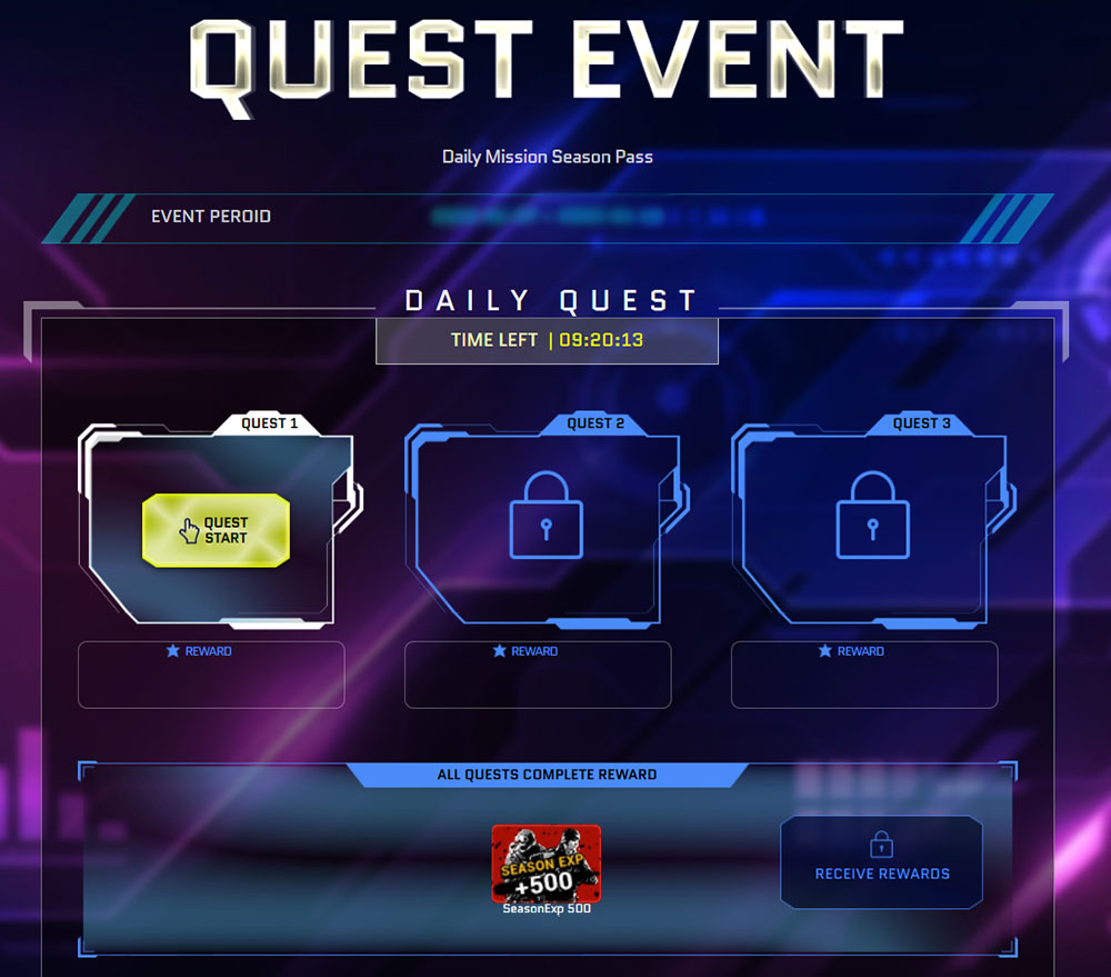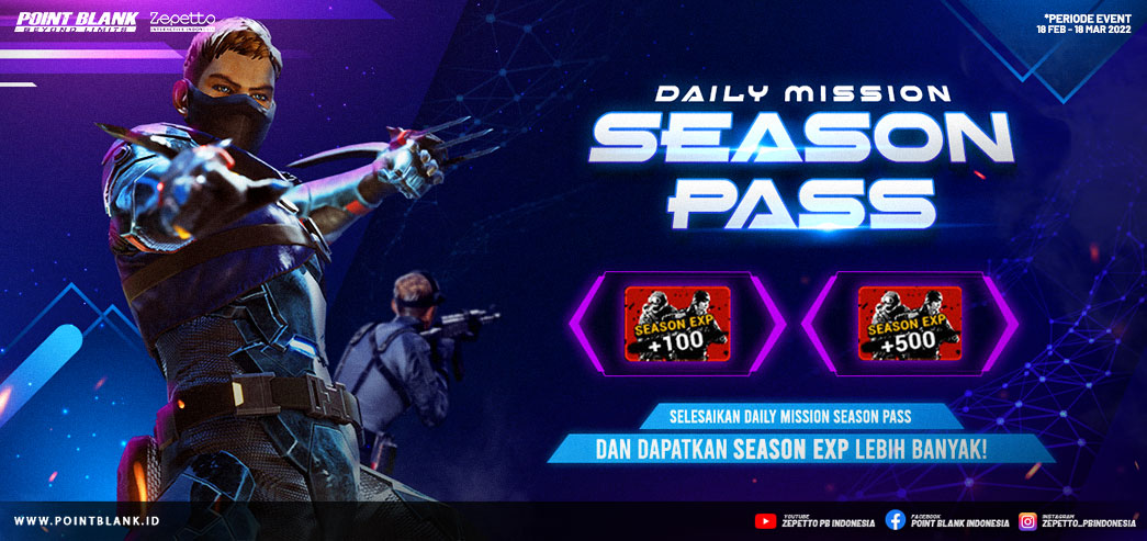 Setelah 18 Februari 2022 kalian bisa mendapatkan Season EXP lebih banyak dengan Menyelesaikan Daily Mission Season Pass Karena All Quest Complete Reward akan berubah dari Season Exp 100 menjadi Season Exp 500 ![]() Sebelumnya Kalian hanya bisa mendapatkan maksimum 400 Season EXP per harinya bila menyelesaikan Web Quest Event Namun Setelah tanggal 18 Februari 2022 kalian bisa mendapatkan maksimum 800 Season EXP per harinya bila menyelesaikan Web Quest Event karena All Quest Complete Reward akan menjadi 500 Season EXP ![]() Selain Individu Quest juga ada Team Quest yang akan memberikan kamu hadiah tambahan di akhir periode event Hanya Team dengan Point Penyelesaian tertinggi yang akan mendapatkan Reward Tambahan Pemilihan Team akan terpilih secara random / otomatis ketika kamu login melalui official website.
