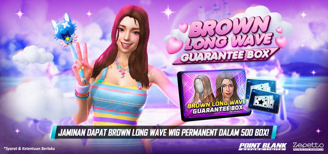 Hai Troopers Mau Jaminan Dapat Permanent Weapon??? Sekaranglah saatnya karena ada Guarantee Box yang menjamin kamu dapat Permenent Weapon Terbaru. Cukup membuka Brown Long Wave Guarantee BOX Sebanyak 500 BOX maka kalian akan mendapatkan Brown Long Wave Wig Permanent. Periode : 11 November - 8 Desember 2025 ![]() Dari Brown Long Wave Guarantee BOX kamu akan berkesempatan untuk mendapatkan Brown Long Wave Wig Permanent ![]() atau