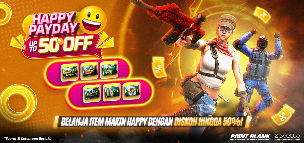 ![]() Hi Troopers, Ada Promo menarik untuk kalian lho...! Karena kami telah mempersiapkan HAPPY PAYDAY UP TO 50% OFF di Ingame Shop lho..!! Periode Event berlaku 25 November (Setelah Maintenance) - 1 Desember 2025 ( 23.55 WIB ) Berikut adalah Item Spesial dengan Durasi Tertentu dengan Diskon Up To 50% : ![]() ![]() ![]() ![]() ![]() ![]() *Item, Ketentuan & Waktu dapat berubah sewaktu - waktu tanpa pemberitahuan terlebih dahulu Besaran Diskon Berbeda-beda Bergantung pada Durasi Item yang ingin kamu beli