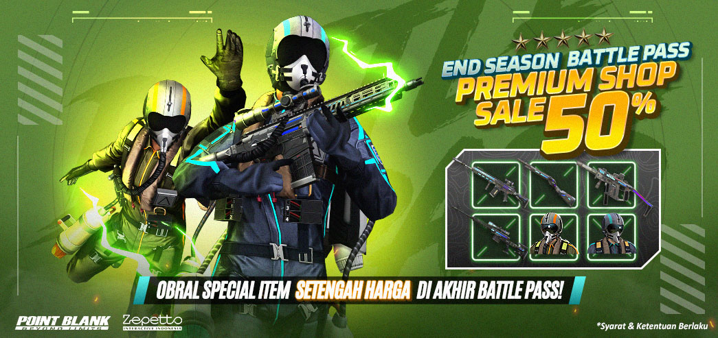 Hai Troopers Sudah Punya Premium Battle Pass Belum nih?? Karena Kami telah mempersiapkan Berbagai Item Spesial dengan Harga diskon 50% lho..!! Diskon Ini Hanya Tersedia di PREMIUM SHOP BATTLE PASS!! Periode Event berlaku 2 Desember 2025 (Setelah Maintenance) - 8 Desember 2025 (Hingga 23.59 WIB) Berikut adalah Item Spesial dengan Diskon 50% di Premium Shop Battle Pass: ![]() ![]() ![]() ![]() * 1 ID hanya bisa membeli 1 kali per 1 Jenis Item ** Item tersedia hanya dengan Durasi 30 Hari ***Item, Ketentuan & Waktu dapat berubah sewaktu - waktu tanpa pemberitahuan terlebih dahulu