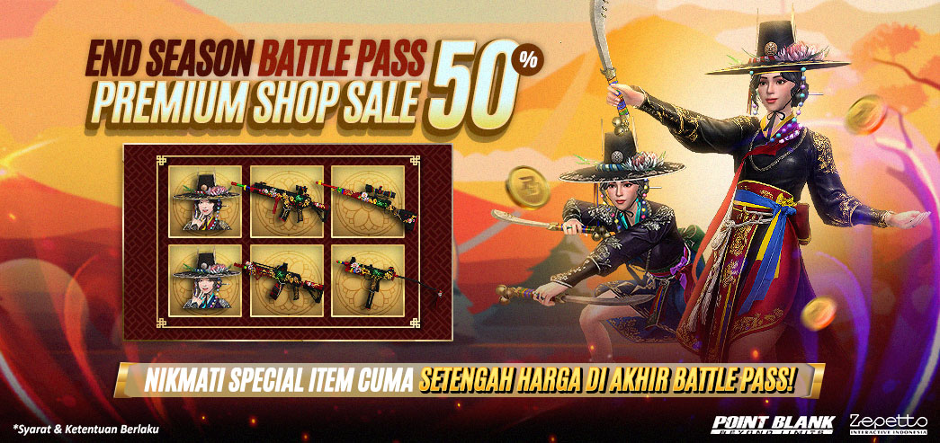 Hai Troopers Sudah Punya Premium Battle Pass Belum nih?? Karena Kami telah mempersiapkan Berbagai Item Spesial dengan Harga diskon 50% lho..!! Diskon Ini Hanya Tersedia di PREMIUM SHOP BATTLE PASS!! Periode Event berlaku 7 April 2026 (Setelah Maintenance) - 13 April 2026 (Hingga 23.59 WIB) Berikut adalah Item Spesial dengan Diskon 50% di Premium Shop Battle Pass: ![]() ![]() ![]() ![]() * 1 ID hanya bisa membeli 1 kali per 1 Jenis Item ** Item tersedia hanya dengan Durasi 30 Hari ***Item, Ketentuan & Waktu dapat berubah sewaktu - waktu tanpa pemberitahuan terlebih dahulu