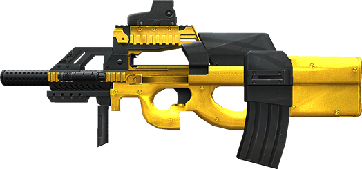 P90 M.C. G. is a gold plated P90 that is intended for military use. It has been modified to fire the 5.56x45mm caliber bullet which is one of its unique characteristics